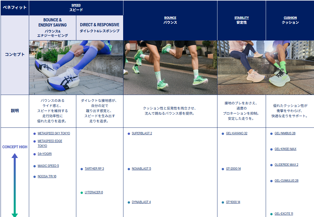 アシックスの類型で考えると、Bounce系でブラスト。