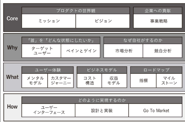 その場合、本書で書かれているようなプロダクトの4階層を考え、整理していきそのうえで自社メンバーのスキルセットなどをそろえていく。。。