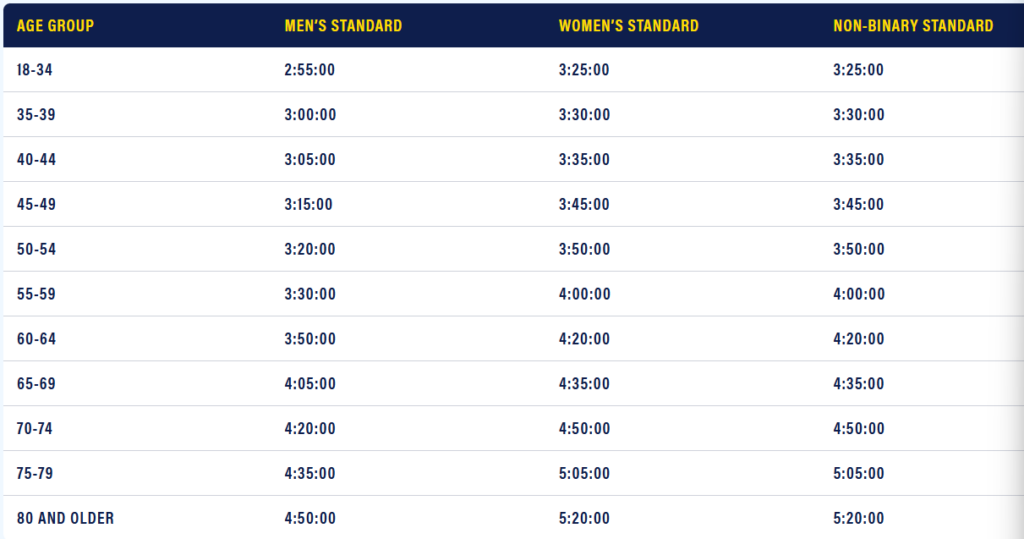 特に、抽選はもちろんのこと高いハードルを設定している大会もいくつかあり、ボストンマラソンなどは年代別に基準タイムが設けられています