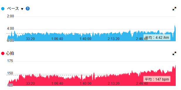 イメージでは序盤をもっと抑えて走っていたのですが、数値で見る限りそれは3km程度。