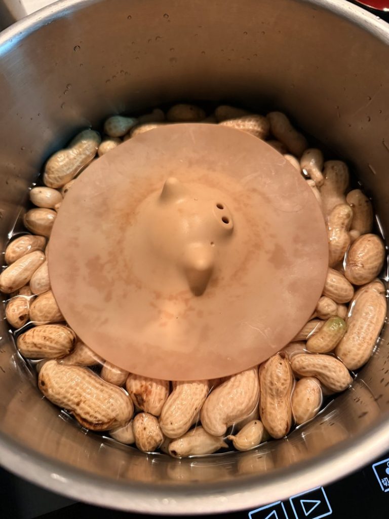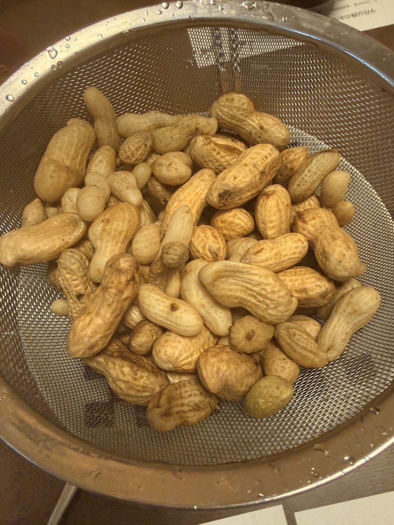 確かに、普通の落花生のように乾燥させたらこの大きさだったら硬いかもしれない。。と、急遽茹でることに