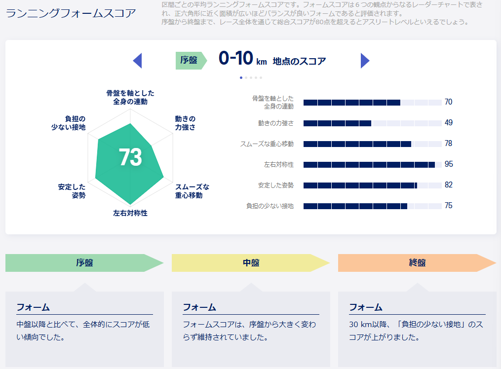 終盤に来て「負担の少ない接地」スコアが上がったのはなんだろう。単純にペースを上げたからのような気もしますが。