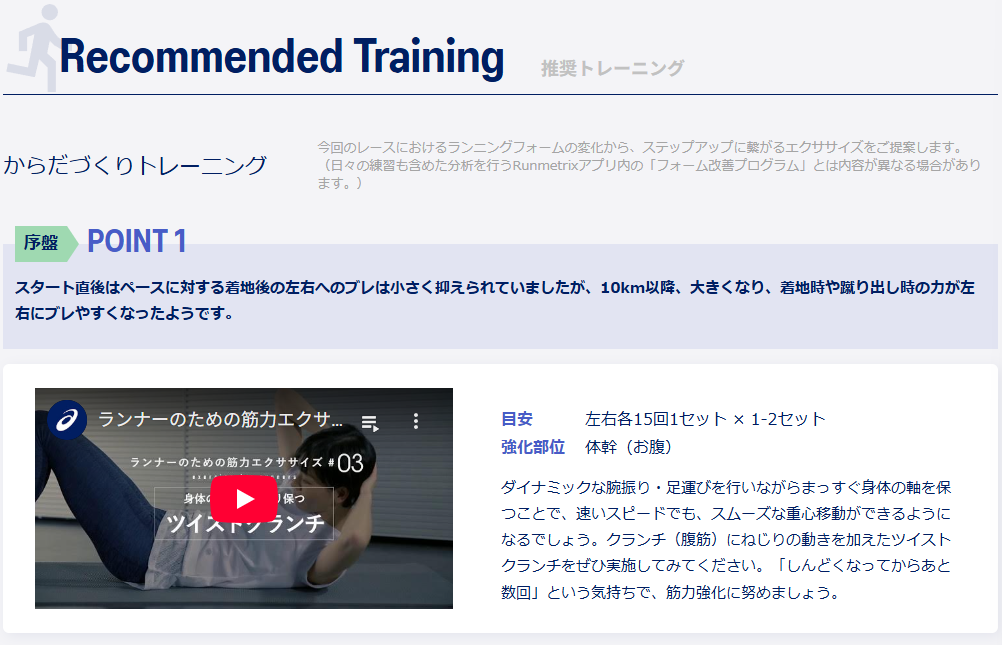 有料となるのですが、昨夏のASICSイベントに参加したのでチケットが1枚あり、今回の水戸黄門漫遊マラソンのデータに対してレポート作成を依頼してみました