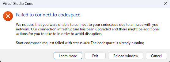 codespaces側で何かしらエラーがおきていないかを確認することができればもう少し原因究明できそうなものですが。