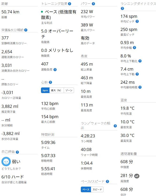 最終的に60kmを目標としていたのですが50kmで断念しました。