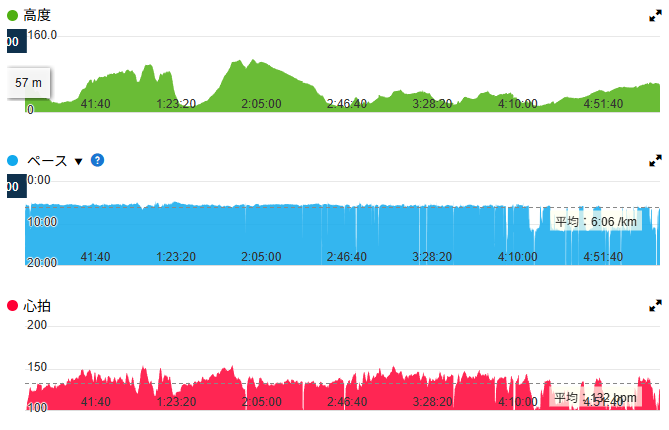 今回、特に調整も何もなく、前日にそれなりに走ったあとだったことを考えると、80kmあたりはこのペースであればそれほど問題にならないのではないかと思えます。