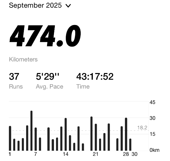 こうやって振り返ってみると、走ってるのと病院通いで終わった9月担ってしまいました。