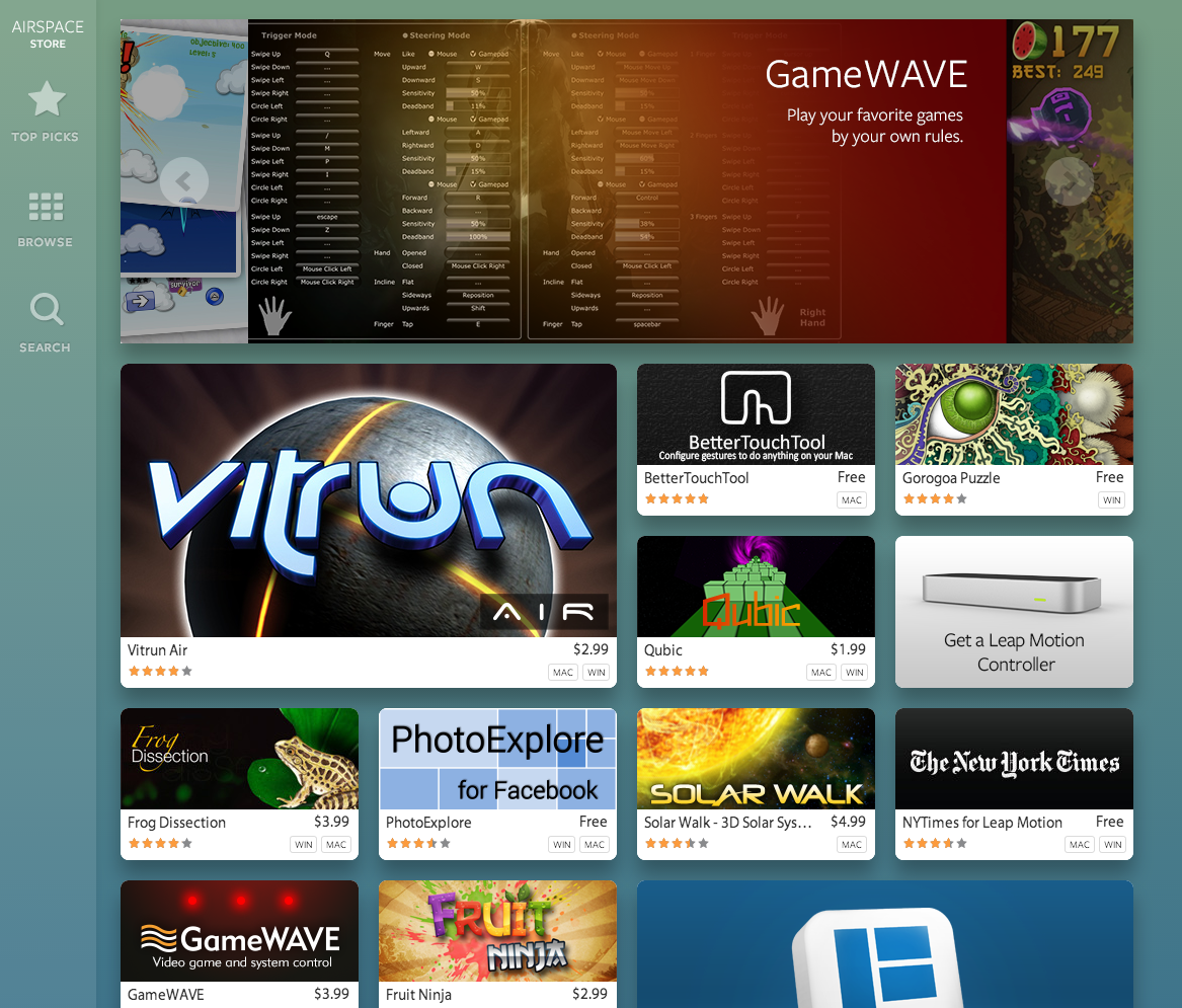 LeapMotionのアプリケーションは、専用のランチャーであるAirspaceにまとめられる。